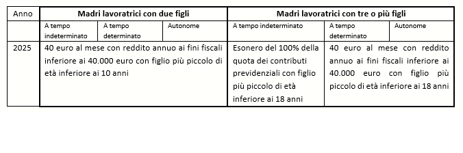 Il Decreto-legge n. 95 del 30/06/2025, nelle more dell’attuazione di quanto previsto dall’art. 1 co. 219 della L. 207/2024 (c.d. Legge di Bilancio 2025), ha previsto l’erogazione da parte dell’INPS di una somma pari a 40,00 euro mensili (non imponibile ai fini fiscali e contributivi) a favore della lavoratrice madre titolare di un reddito da lavoro dipendente e autonomo non superiore a 40.000 euro ai fini fiscali.